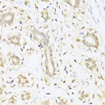Immunohistochemistry of paraffin-embedded human mammary cancer using STAT1 antibody.