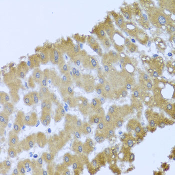 Immunohistochemistry of paraffin-embedded human liver damage using ACP1 antibody. |