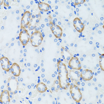 Immunohistochemistry of paraffin-embedded rat kidney using C1 Inactivator antibody.