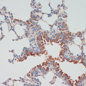 Immunohistochemistry of paraffin-embedded mouse lung using CHAT antibody. |