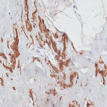 Immunohistochemistry of paraffin-embedded human breast using ELN antibody. |