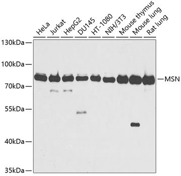 Western blot analysis of extracts of various cell lines, using MSN antibody. |