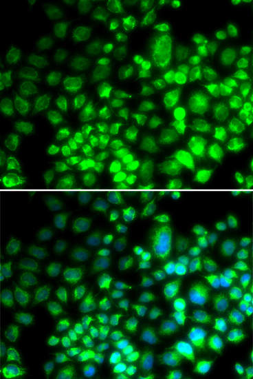 Immunofluorescence analysis of HeLa cells using ST6GAL1 antibody. |
