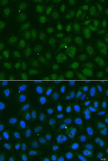 Immunofluorescence analysis of U2OS cells using SUMO1 antibody. |