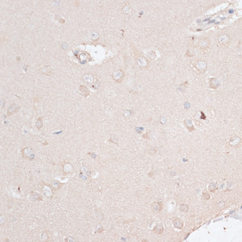 Immunohistochemistry of paraffin-embedded mouse brain using ABCF2 antibody. |