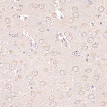 Immunohistochemistry of paraffin-embedded rat brain using ABCF2 antibody.