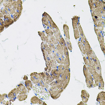 Immunohistochemistry of paraffin-embedded rat heart using IKBKG antibody.