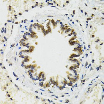 Immunohistochemistry of paraffin-embedded rat lung using RUVBL2 antibody.