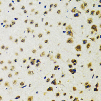 Immunohistochemistry of paraffin-embedded mouse brain using RUVBL2 antibody. |