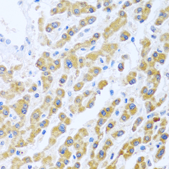 Immunohistochemistry of paraffin-embedded human liver using MANF antibody.