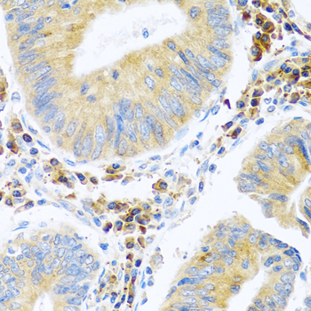 Immunohistochemistry of paraffin-embedded human colon carcinoma using MANF antibody. |