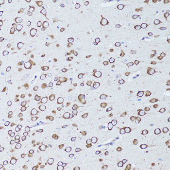 Immunohistochemistry of paraffin-embedded mouse brain using TNFRSF11A antibody.