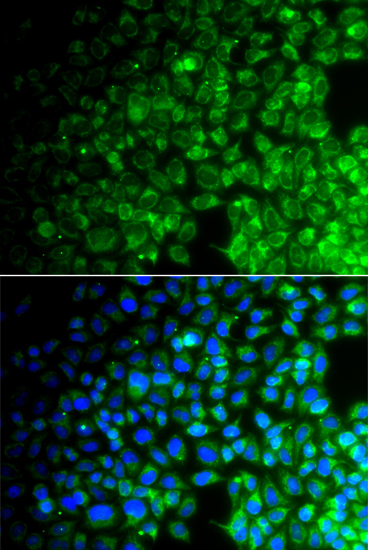 Immunofluorescence analysis of A549 cells using USP10 antibody. |