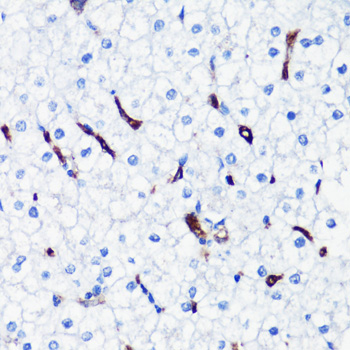 Immunohistochemistry of paraffin-embedded human liver using HO-1 antibody.