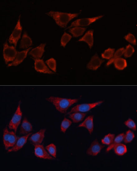 Immunofluorescence analysis of HeLa cells using HO-1 Polyclonal Antibody. |