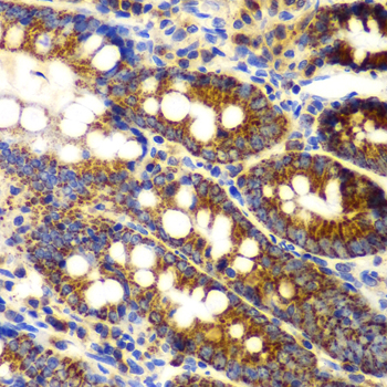 Immunohistochemistry of paraffin-embedded rat Intestine using RANKL antibody.