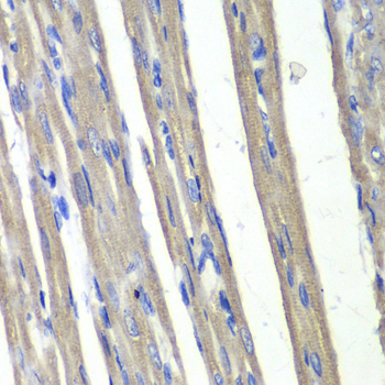 Immunohistochemistry of paraffin-embedded rat heart using AKR1C3 antibody.