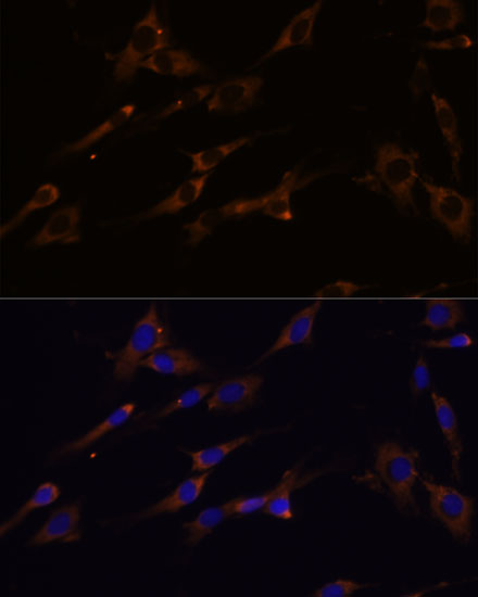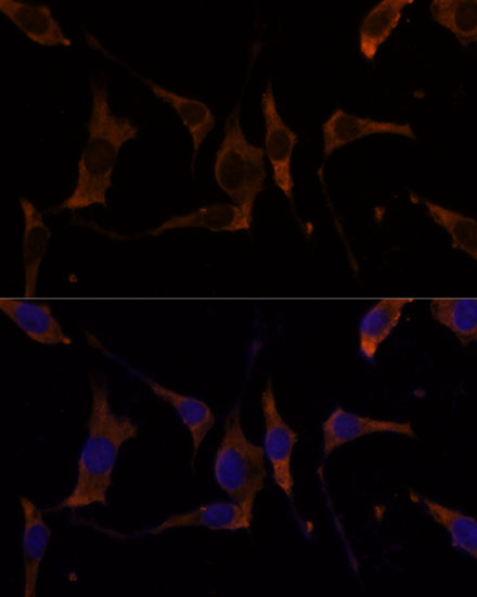 Immunofluorescence analysis of L929 cells using RPL7A Polyclonal Antibody. |