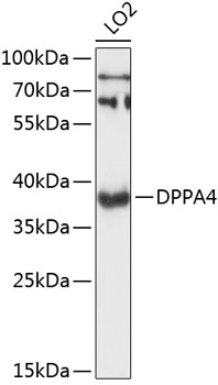 Western blot analysis of extracts of LO2 cells, using DPPA4 antibody. |