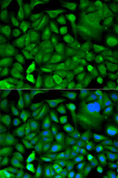 Immunofluorescence analysis of A-549 cells using MIF antibody. |