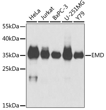 Western blot analysis of extracts of various cell lines, using EMD antibody.