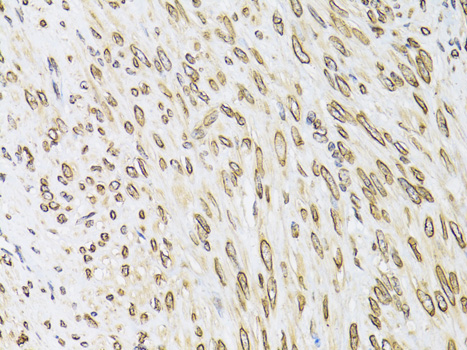 Immunohistochemistry of paraffin-embedded human uterine cancer using EMD antibody. |