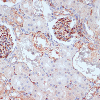 Immunohistochemistry of paraffin-embedded mouse kidney using CD34 antibody. |