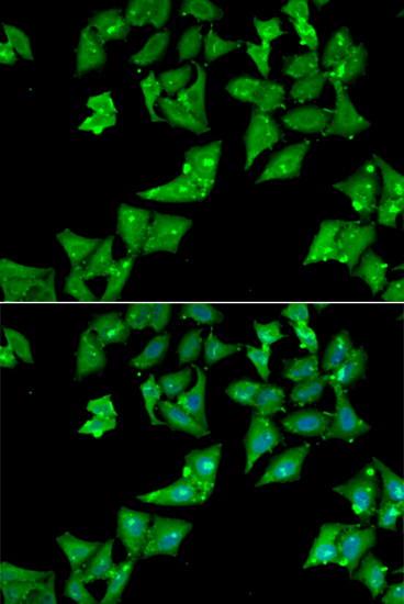 Immunofluorescence analysis of HeLa cells using AGA antibody. |