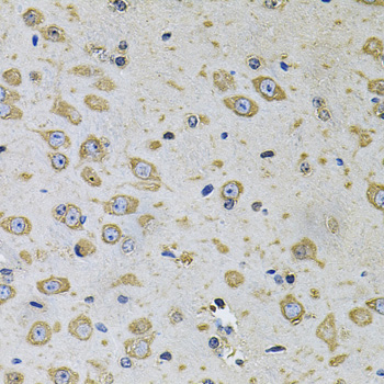 Immunohistochemistry of paraffin-embedded rat brain using RhoA Antibody.
