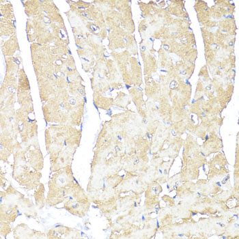 Immunohistochemistry of paraffin-embedded mouse heart using ATP1B1 antibody. |