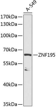 Western blot analysis of extracts of A549 cells, using ZNF195 antibody. |