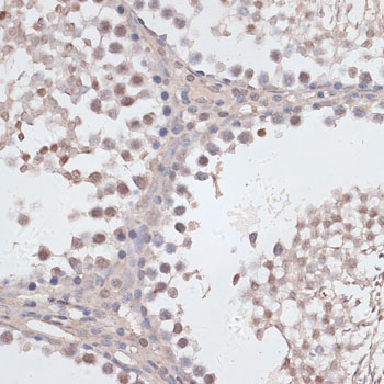 Immunohistochemistry of paraffin-embedded rat testis using CCNE2 antibody.