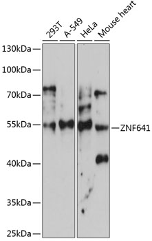 Western blot analysis of extracts of various cell lines, using ZNF641 antibody. |