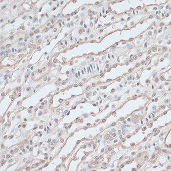 Immunohistochemistry of paraffin-embedded mouse kidney using ZNF597 antibody. |