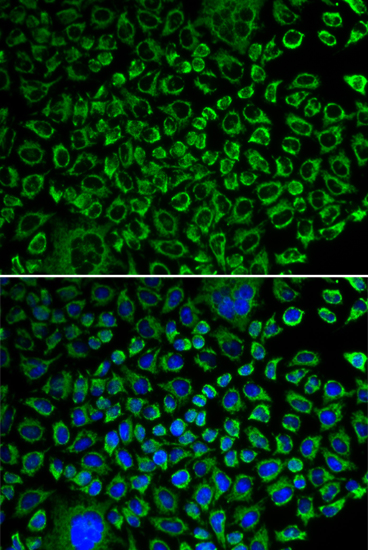 Immunofluorescence analysis of A549 cells using F10 antibody. |