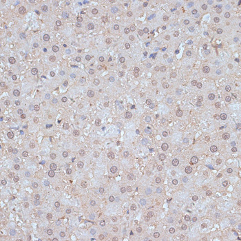 Immunohistochemistry of paraffin-embedded rat liver using SNW1 antibody.