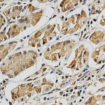 Immunohistochemistry of paraffin-embedded human stomach using LGALS3 Antibody.