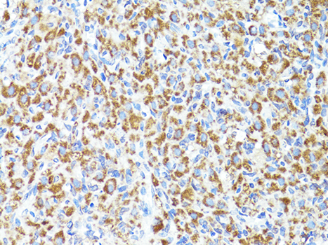 Immunohistochemistry of paraffin-embedded rat ovary using S100A10 antibody.