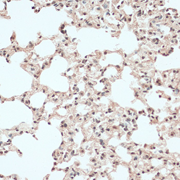 Immunohistochemistry of paraffin-embedded mouse lung using RB1 antibody.