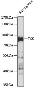 Western blot analysis of extracts of rat thymus, using TXK antibody. |