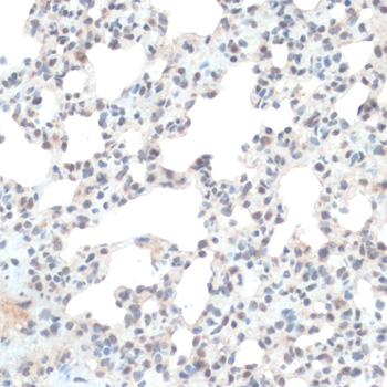 Immunohistochemistry of paraffin-embedded rat lung using TXN antibody.