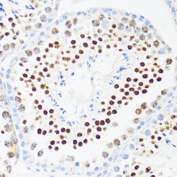 Immunohistochemistry of paraffin-embedded mouse testis using DDX21 antibody.
