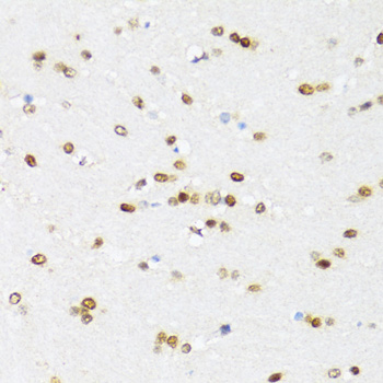 Immunohistochemistry of paraffin-embedded mouse brain using DDX21 antibody.