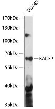 Western blot analysis of extracts of DU145 cells, using BACE2 antibody. |