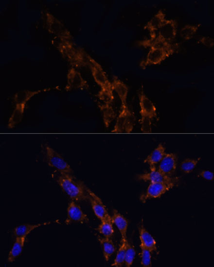 Immunofluorescence analysis of NIH/3T3 cells using TGFB1 antibody. |