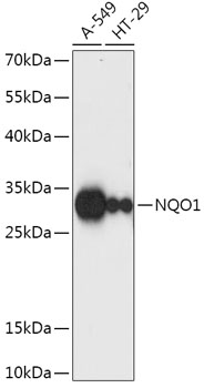 Western blot analysis of extracts of various cell lines, using NQO1 antibody. |