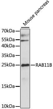 Western blot analysis of extracts of Mouse pancreas, using RAB11B antibody. |