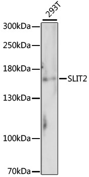 Western blot analysis of extracts of 293T cells, using SLIT2 antibody. |