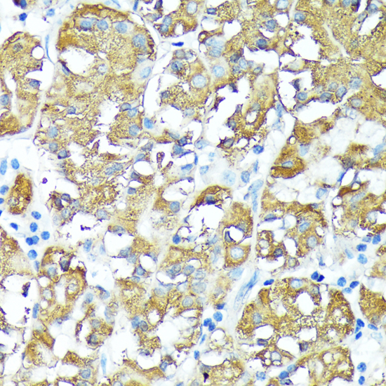 Immunohistochemistry of paraffin-embedded human stomach using TNFR1 antibody.