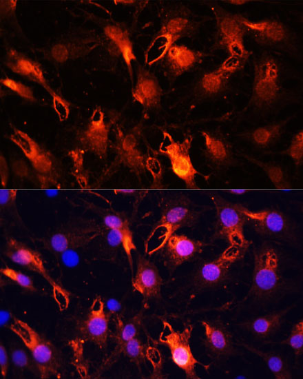 Immunofluorescence analysis of C6 cells using RNF149 Polyclonal Antibody. |